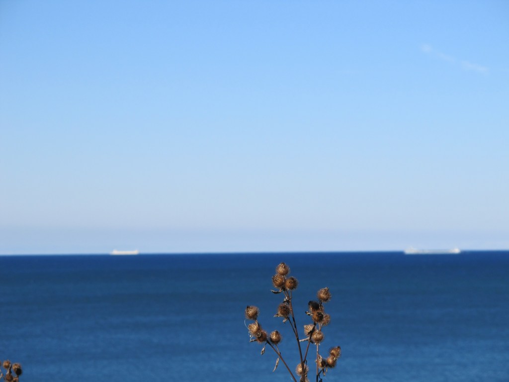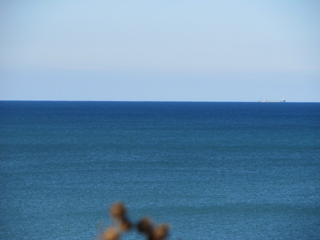 The next morning, I was up before my husband was, so I set out my chair in front of the cabin and just chilled out with the lake views – and some tunes on my mp3 player. As an added bonus, I got to see some freighters!