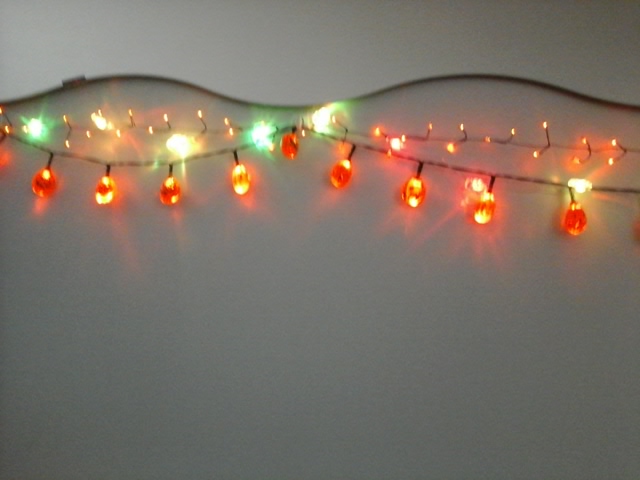 I now have three different types of battery-powered Halloween string lights. Flashing pumpkins, basic orange, and as of today…color changing skulls! I bought four packages of the skulls today in a curbside order at one of those fly-by-night Halloween stores that set up shop in vacant retail spots this time of year. Behold a sampling of my lights: