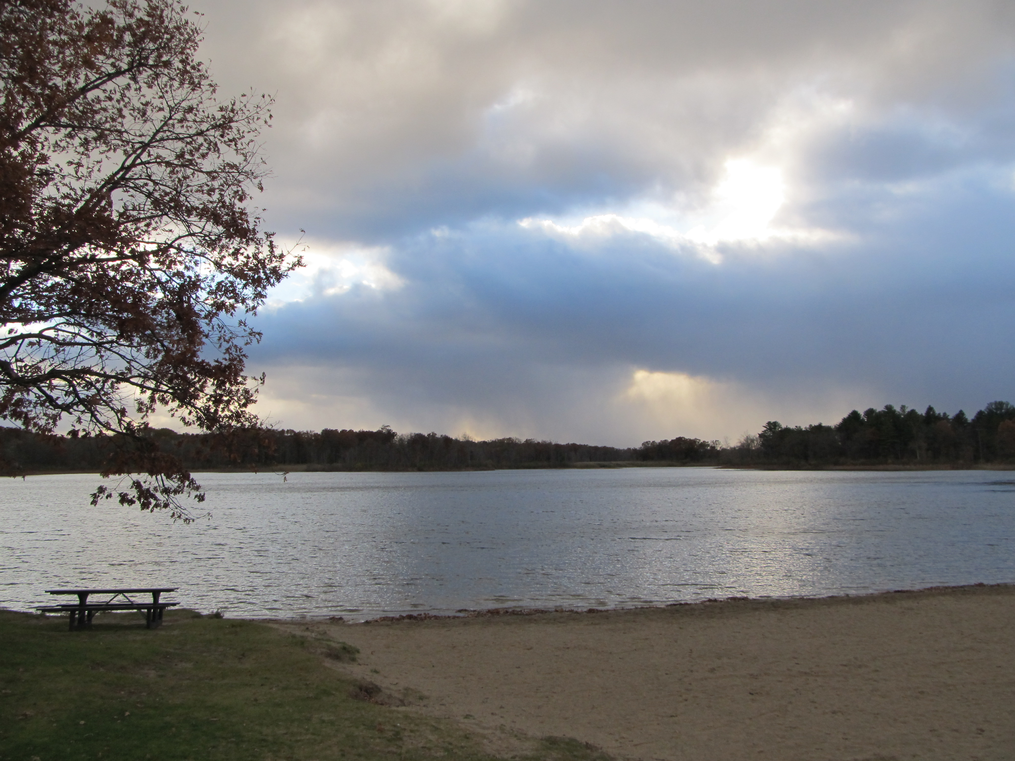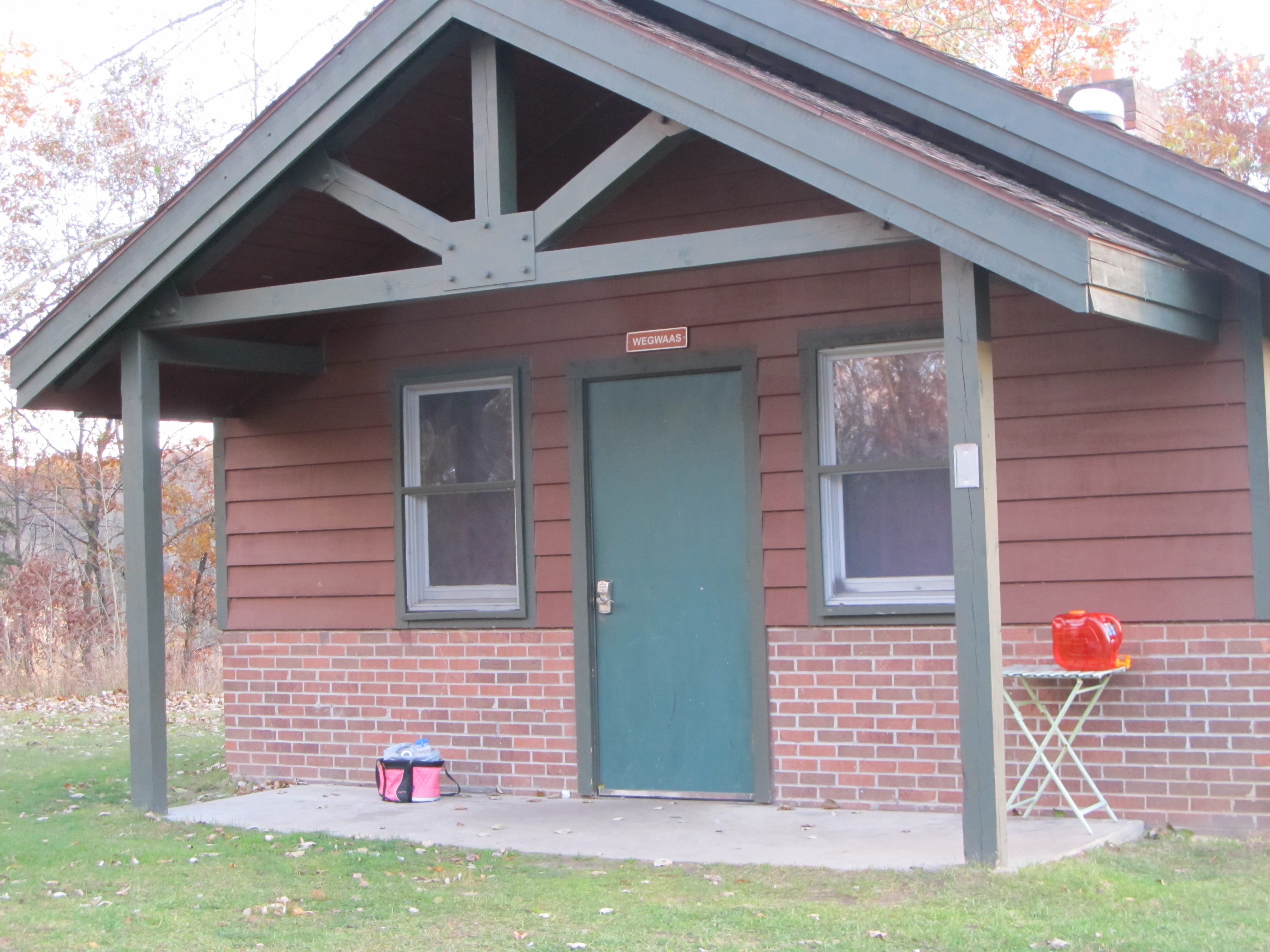 We set out on a sunny but chilly Saturday afternoon with a packed to the gills Chevy Malibu. The plan was to unload our gear at the cabin, then do a run for firewood and ice. It’s a pretty standard car camping maneuver we’ve done for years. We wanted to avoid having to “go into” a store on Halloween, especially a busy Kroger grocery store, so our “hope” was we’d find some roadside stop to pick up a pumpkin or two. Score! We found a little self-service produce stand along M-36. We wanted small pumpkins, since space in our car was at a premium (I had a little space by my feet), so we bought two of them for $5. We had $11 cash, so we added a $6 jar of apple butter to complete our sale.
