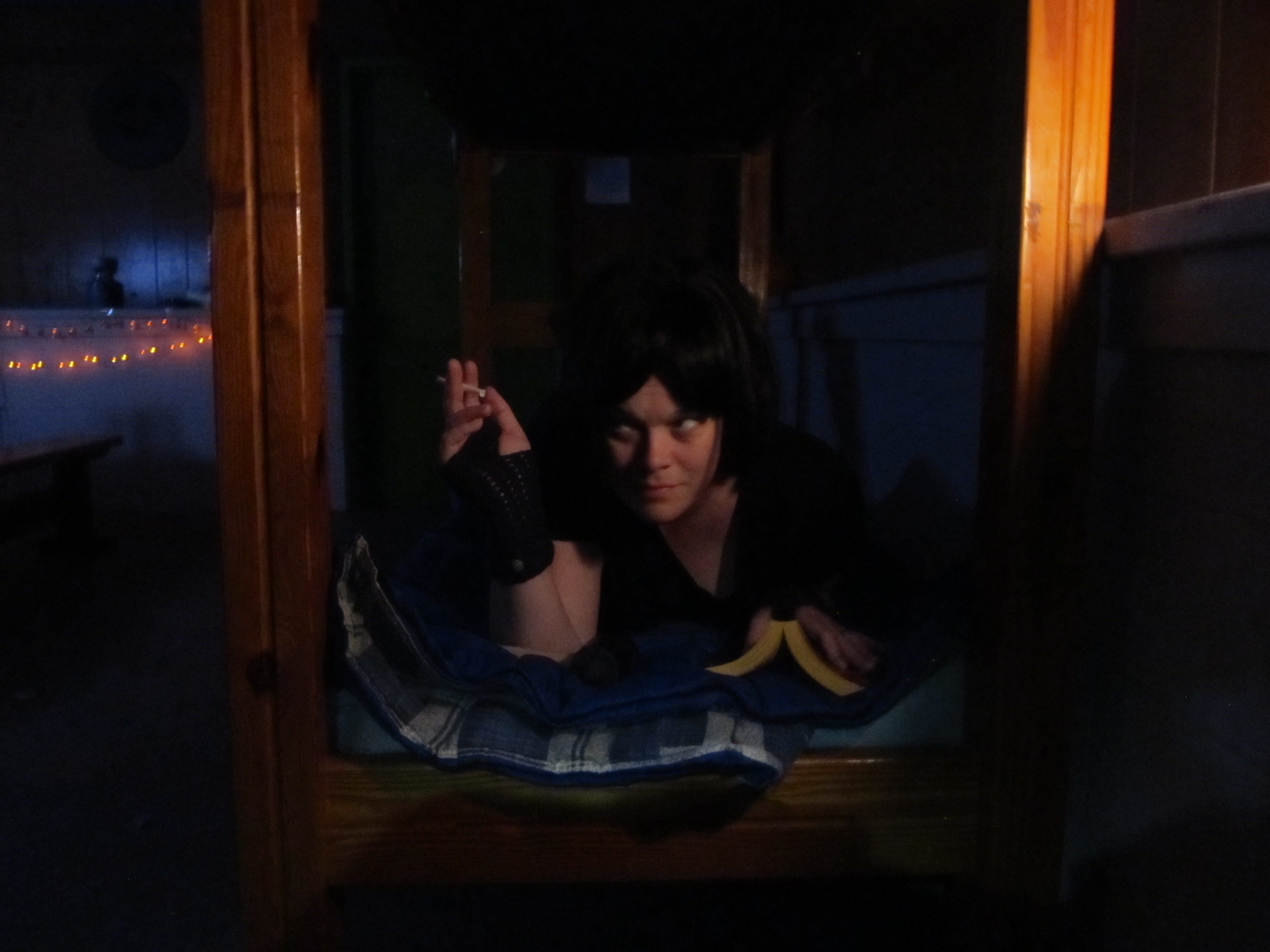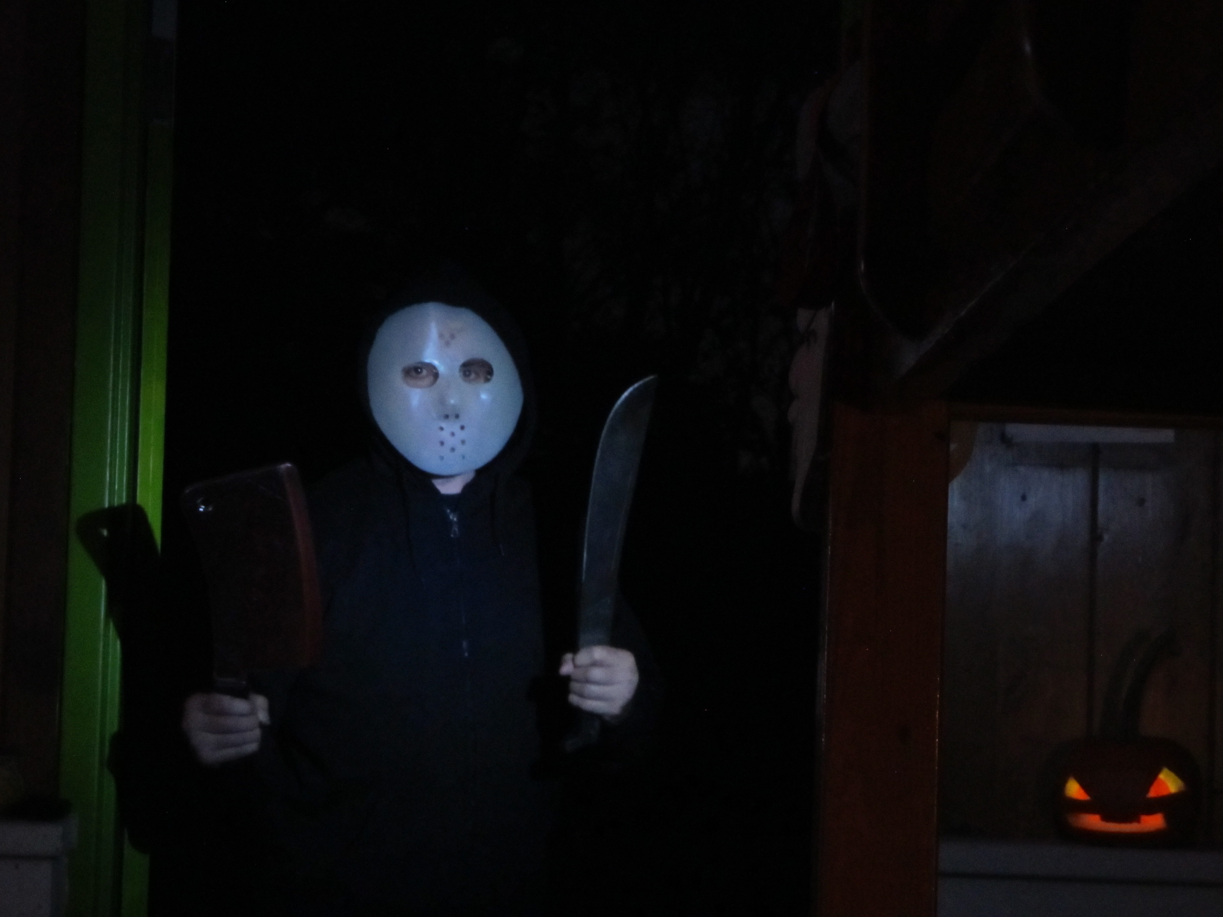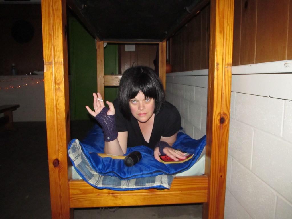 The day after Halloween, it became even more chilly…and windy. We knew a campfire would be out of the question, but we decided we’d enjoy some Halloween candy, play some board games (Zombies and Monsters Menace America) indoors – and goof off with some cosplay in the cabin: