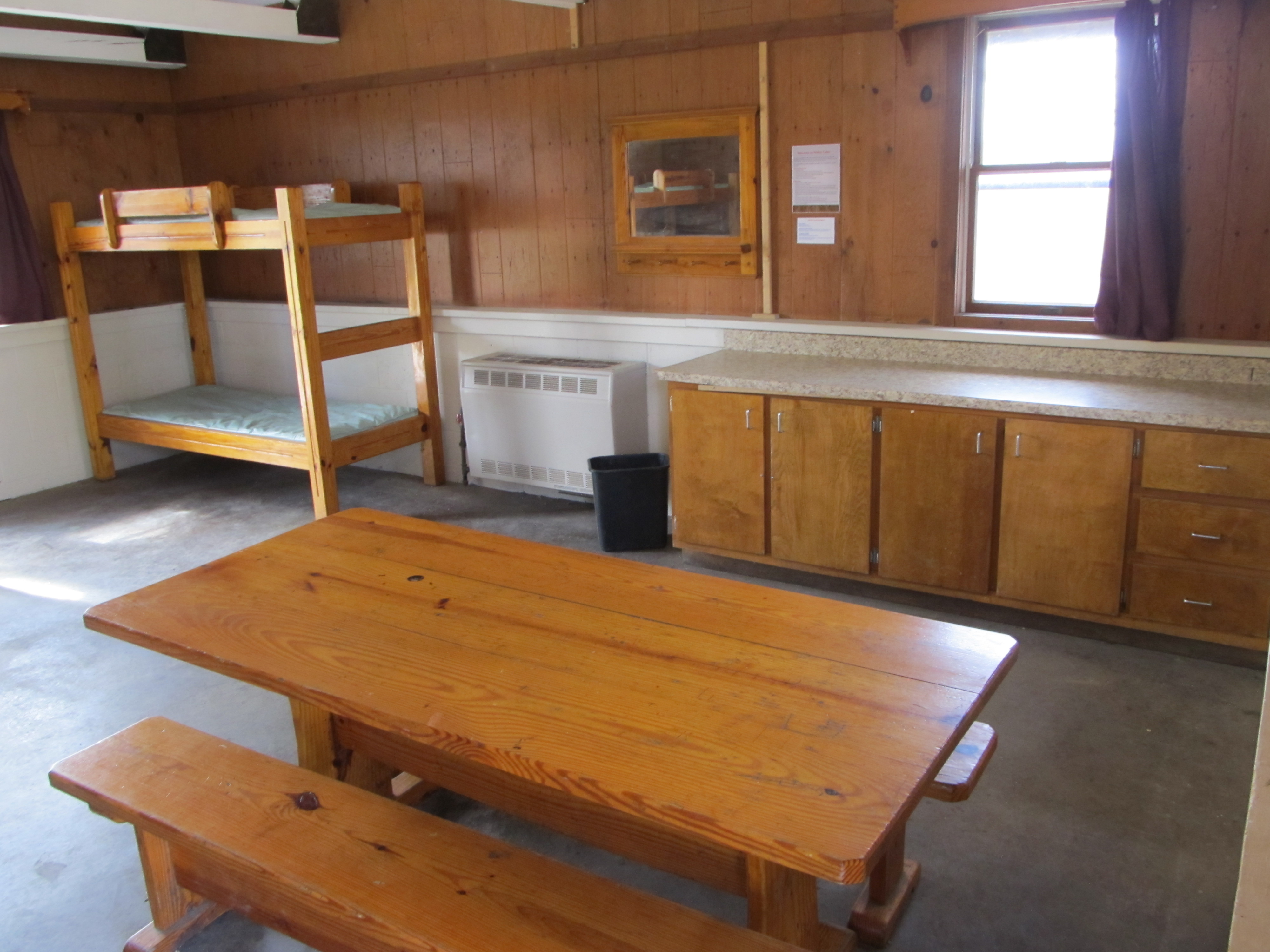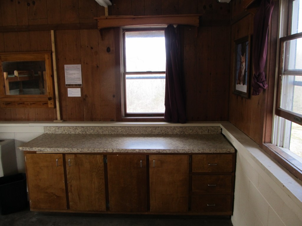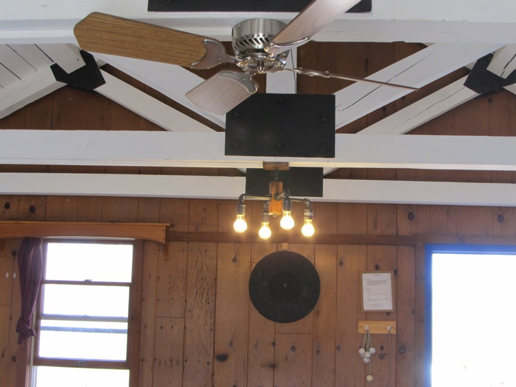 There were some new additions to the cabin that I didn’t expect – a ceiling fan – and set of electric lights above the indoor dining room table. I was almost insulted, since I brought a reuseable grocery bag full of battery powered lights! There was also a USB power hub attached to the kitchen counter (which I tested – it did not seem to work). Good to know I didn’t power up everything beforehand – and bring an auxiliary battery supply – for nothing! Upon closer inspection, we learned that the fan and lights were solar powered.
