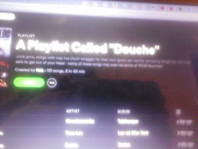 I started subscribing to Spotify right around when the plague started. And I haven’t regretted it! I’ve made a few playlists, and am thinking of doing a “Cheesy Easy Listening” playlist next! I already have a couple of ’80s music lists, a “Douche” playlist, a “Zombie Killing Games” playlist and “Favorite Songs from Movies” playlist.
