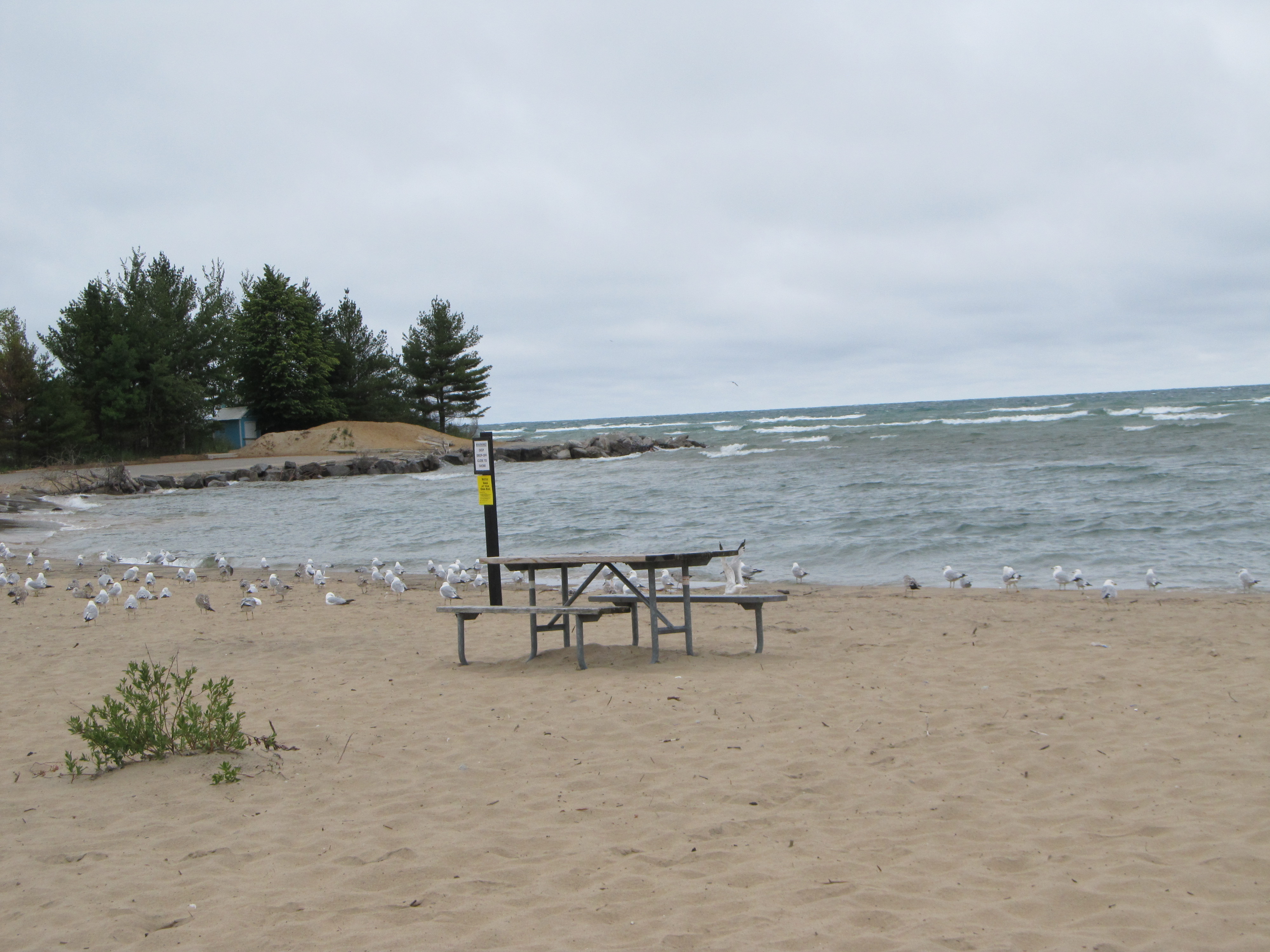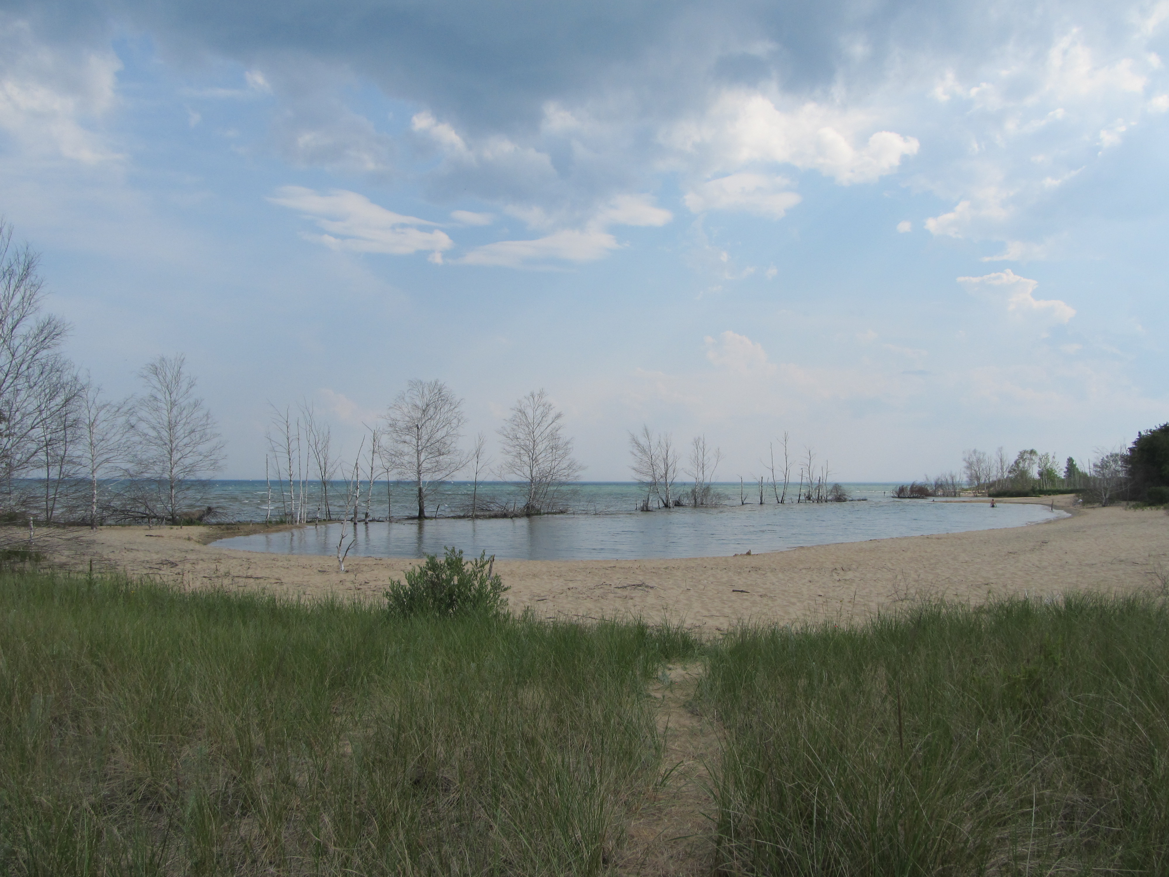 The shoreline at Tawas Point has changed quite a lot over the years, thanks to erosion. The lighthouse even had to be moved from its original location, which happened quite a long time go. High water levels last year turned what used to be a fishing pond into an expanded beach – which means a big chunk of water in the swimming area has a very steep drop off very quickly. It was weird seeing so much water with no people in it (but kind of nice)!
