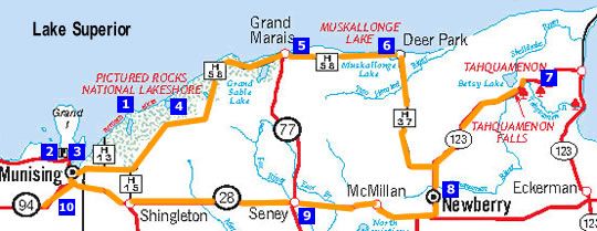 My husband and I happened to be backpacking at Pictured Rocks in July of 2006 when we unwittingly stumbled into a heavily brewing (in a bar – see what I did there?) news story – and a possible “whodunit!” We’d just finished a two-night backpacking trip along the coast and were having a well-earned whitefish dinner accompanied by cold beer at a Grand Marais restaurant called The Dunes Saloon, aka Lake Superior Brewing Company. A little bit about Grand Marais (population estimate 1,300 people) – it’s a sleepy coastal town on Lake Superior, roughly west of Sault Ste Marie, northwest of Tahquamenon Falls.