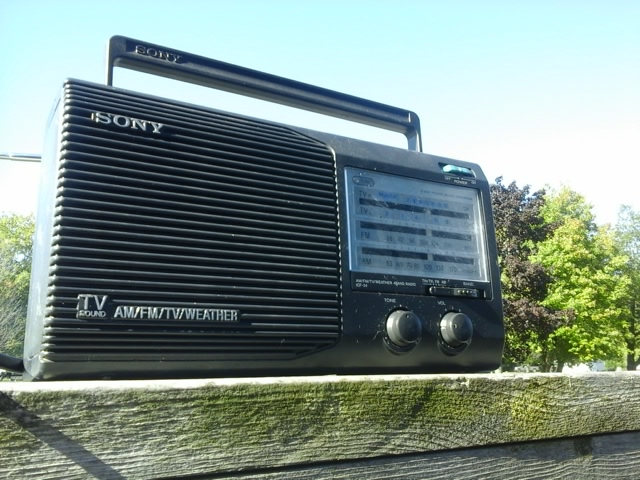 When we got back to the cabin, we’d talked about having lunch and going to Lumberman’s Monument. However, we opted instead to just relax and enjoy the sunny skies and lovely weather. I found a Bad Axe radio station (WLEW 102.1 FM) that played some nice classic rock tunes. Including (you guessed it), Tuesday Afternoon, which was a request by a listener. I’d like to thank that listener for turning me on to that song! I used an old school electric radio plugged in exterior outlet on the cabin with an extension cord and just chilled on the cabin porch to the tunes: