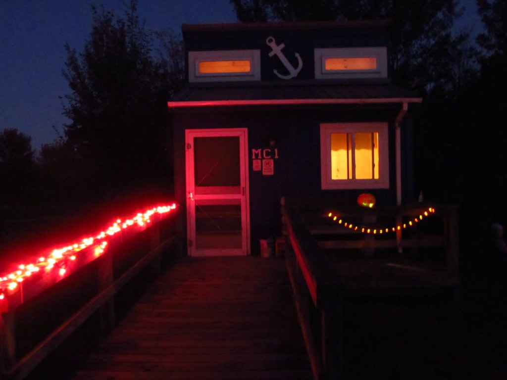You know those days that you know are going to be terrible from the moment you get out of bed? Well, think about the polar opposite of that, and you could pretty much sum up the day I had on October 5, 2021. My husband and I had rented a “mini cabin” at Tawas Point State Park, which looked like this after I’d decorated it for Halloween: