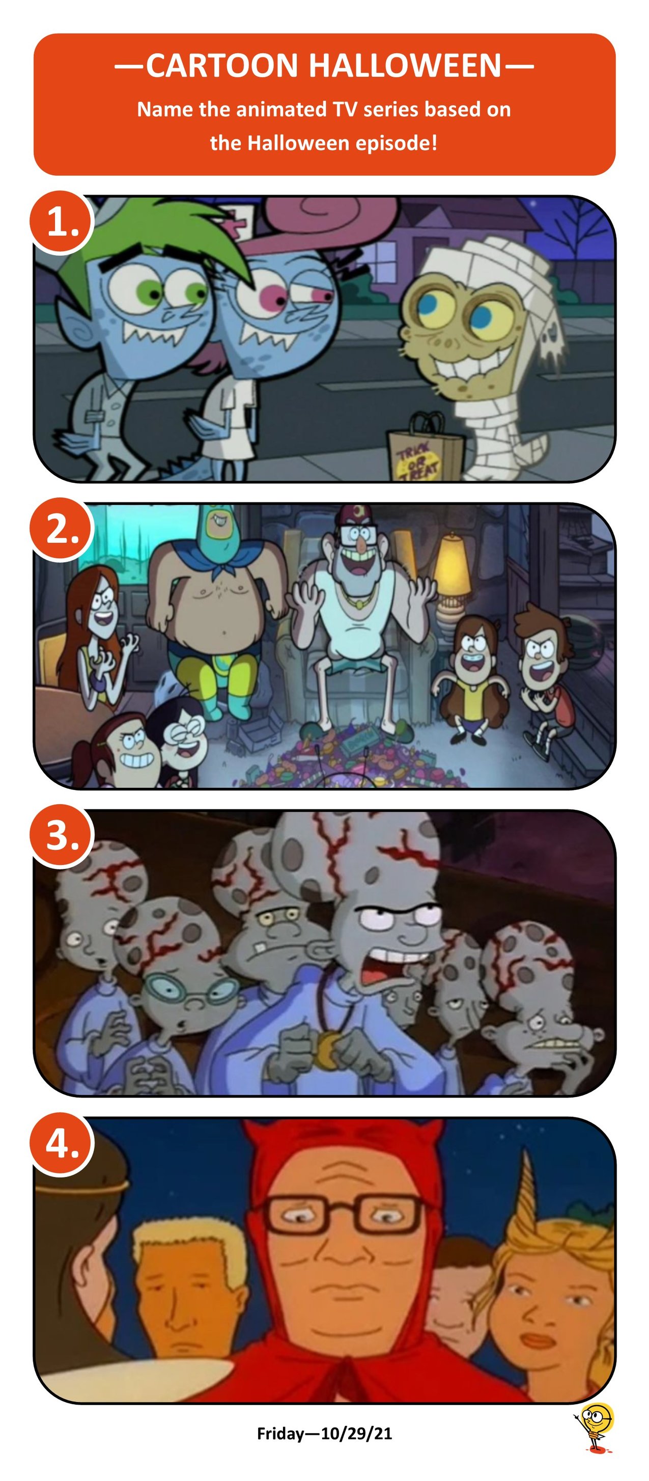 fairly oddparents, gravity falls, hey arnold, king of the hill