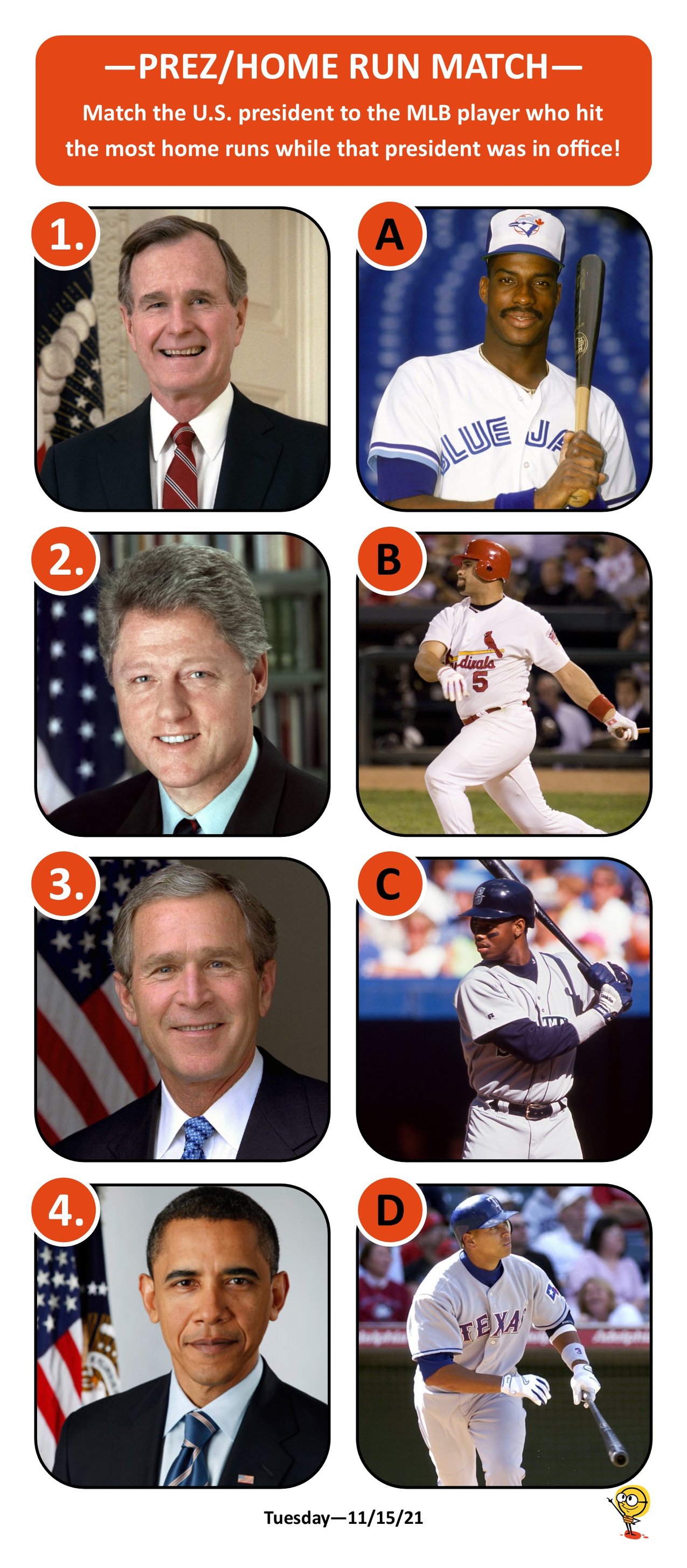 The answers on Mystery two are A C D B. The players are A) Fred McGriff, B) Pujols C) Ken Griffey Jr D) A Rod