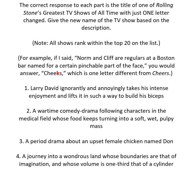 5) Lawsuits – Due to service charges on top of its concert ticket prices, what rock band sued Ticketmaster in 1994 and boycotted the company’s venues for over three years? We discussed two “litigious” bands from the time we could think of, thankfully picked the right one. However, we did not do so well on the nerd point part of the question: