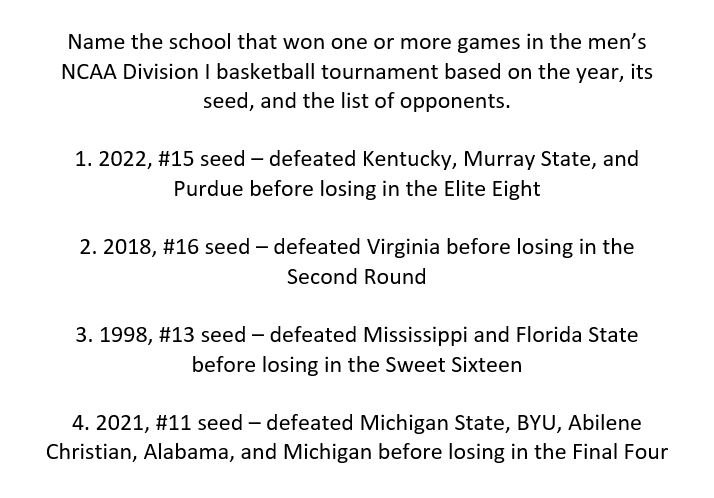 Mystery One – NCAA Division I Basketball