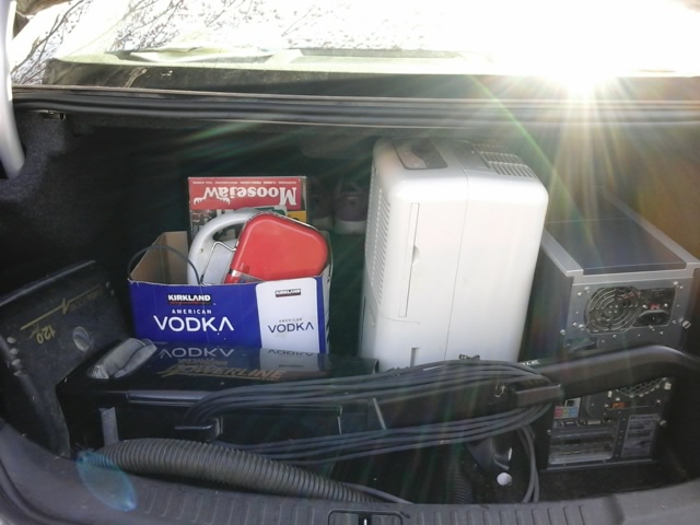 I packed up an old dehumidifier, an old desktop CPU, an old vacuum cleaner, and a box of some random small electronics – mp3 players, phones, laptop, non-working solar radio/flashlight.