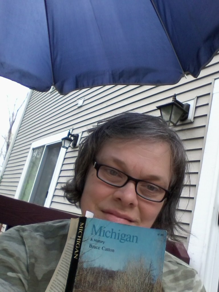 I did some shopping and errands earlier on my day off today. The lure of a nice day was too much for me to overcome this afternoon. So I grabbed a book that I started reading on my trip Up North last week (Up North is Michigan speak for basically any desirable locale one trods to for vacations, which are usually…north). The book? Michigan: A History by Bruce Catton. It was one of a handful of items my husband and I inherited from his grandmother’s estate when she died a few years ago. It’s kind of a dense read, but I’m working through it bit by bit!