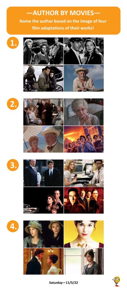 We missed #4, though we joked that the author we put and the actual correct author were essentially the same person…