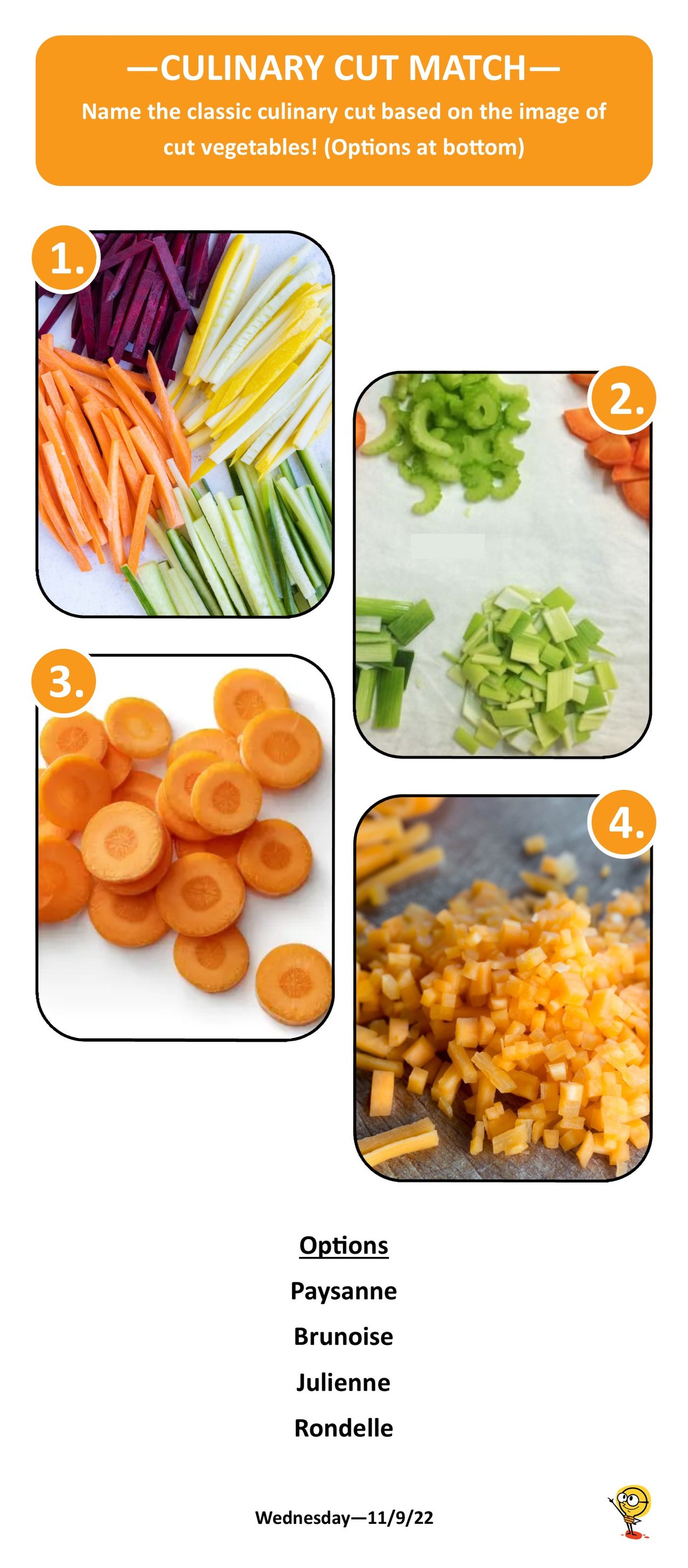 julienne, paysanne, rondelle, brunoise