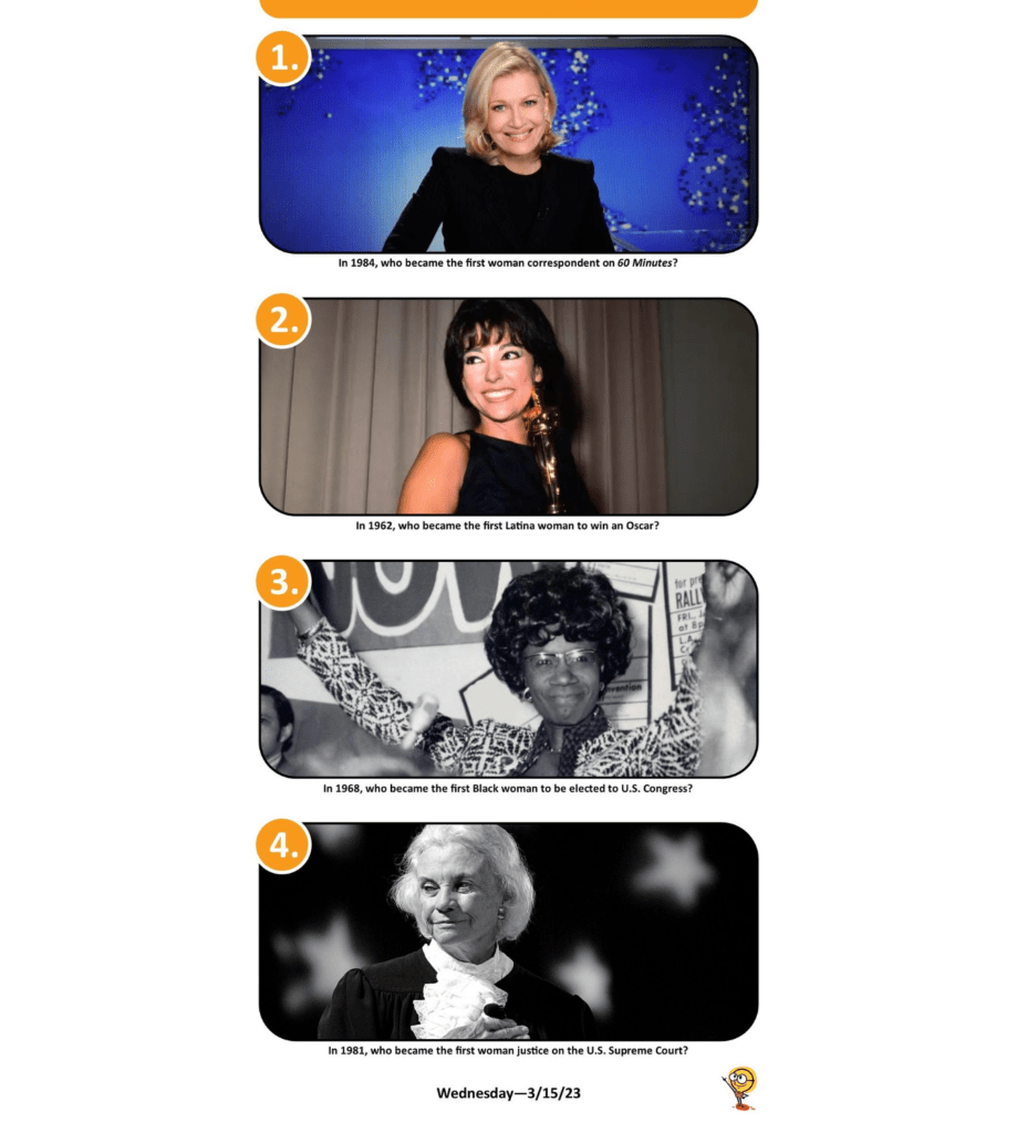 Diane Sawyer, rita moreno, shirley chisholm, sandra day o’connor