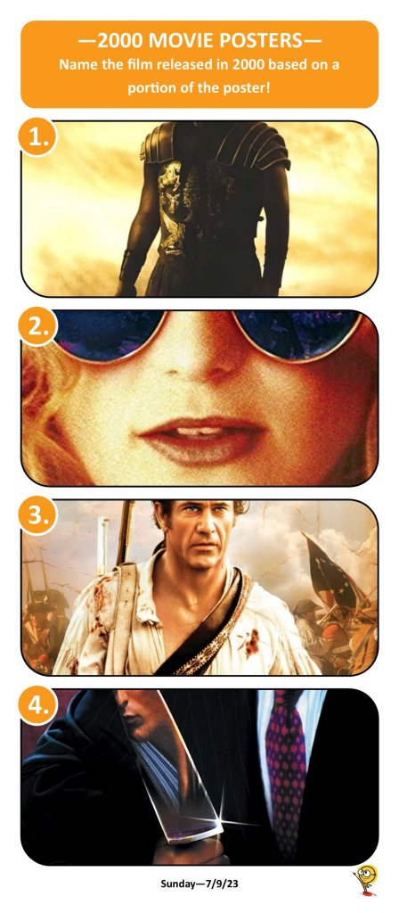 We only got #1 correct, and it was a guess. Maybe we need to completely change our present pop culture experiences and pay more attention to the news? ๐Ÿ™‚