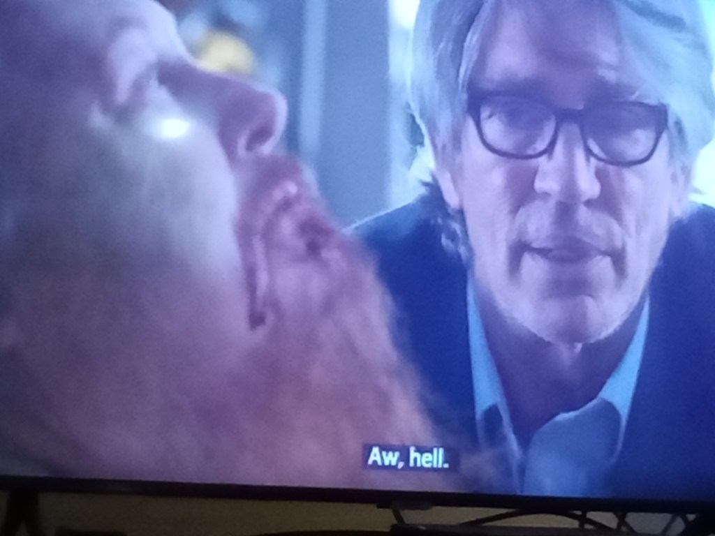 “Aw hell” is not unlike my thoughts while watching season 5 episode 9 of Justified (streaming on Hulu)! First off, two actors from The Dark Knight – Eric Roberts (whom you might know best as Julia Roberts’ brother) is in it, and secondly, another TDK actor is in it, too! He’s not as well known, but I’ve seen the movie enough that even a bit player won’t slip me by! The other actor is Joshua Harto, who played that Wayne Enterprises employee who toyed with blackmailing Bruce Wayne.