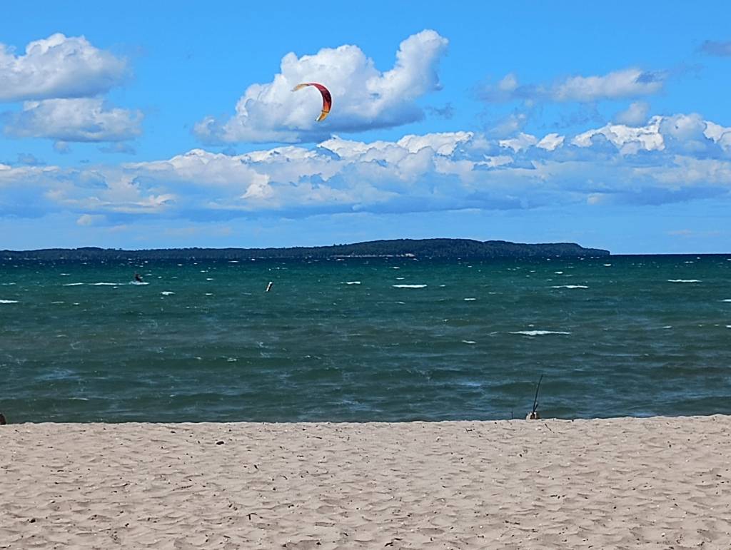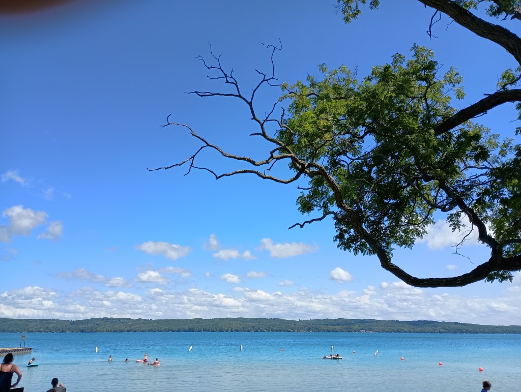 The next day, the skies were full – but not TOO full – of fun, fluffy white clouds, the sun was shining brightly, there was a light breeze (except on lake MI, more about that in a bit) and it wasn’t muggy or too hot – so we decided that it was a perfect “beach day.” We visited a municipal park (William Good Day Park, search for that in Google maps) located on the northwest side of Torch Lake to check it out, here are a couple of pictures: