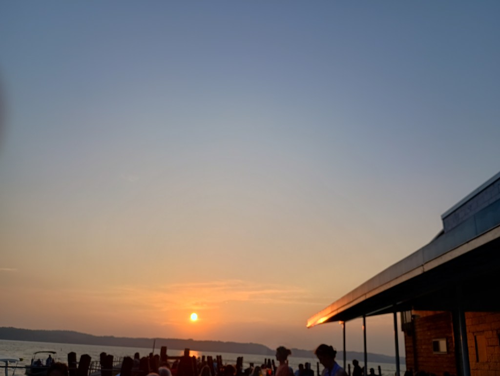 So what’s this about a “chain of lakes,” you ask? This “chain of Lakes” includes the legendary Torch Lake, which appears on countless “most beautiful lakes in the world” lists, among others, including Intermediate Lake, Clam Lake, Torch Lake, Lake Skegemog and Elk Lake. So we thought we’d try judging this famous lake for ourselves. Our first night we set up camp and had a late dinner at a place where could check out a sunset π over Torch Lake: