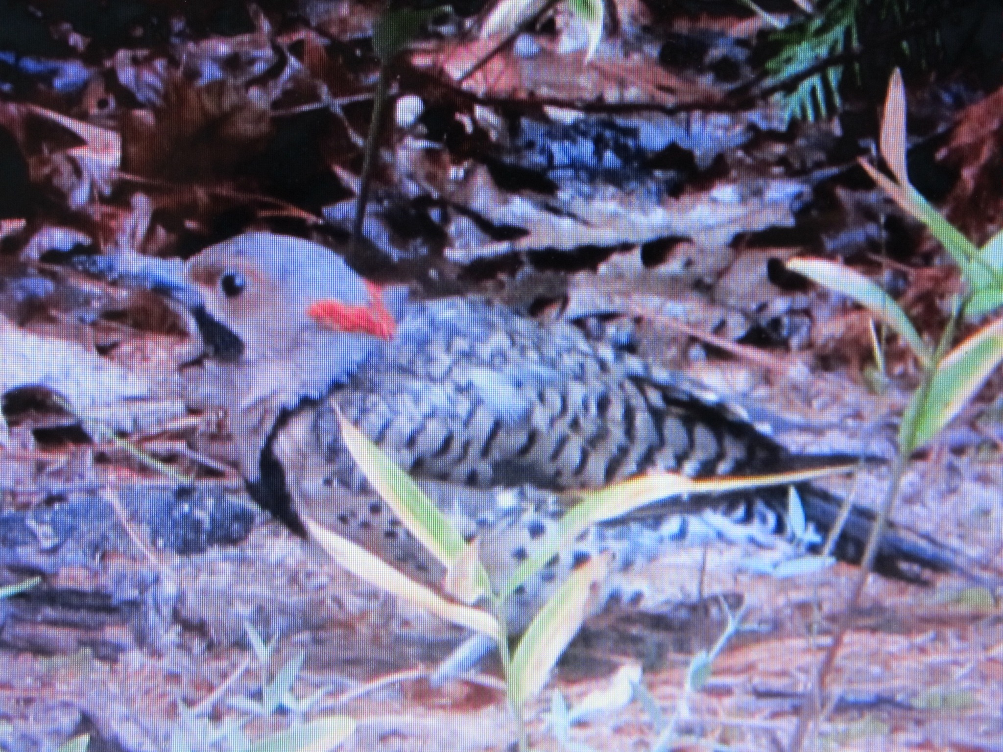 While on our trek back up the stairs, we found some birds we’d never seen before. There was a little flock of them, they made adorable cheeping sounds, and my husband even noticed one being fed by its mother! Now, he seems to have a uncanny knack for seeing birds in their fledgling phases! In recent years, we’ve seen fledgling Baltimore Orioles on our deck at home, fledgling mourning doves at a local beer garden, and most recently, fledgling Northern flickers. Here’s a zoomed in look at one of these: