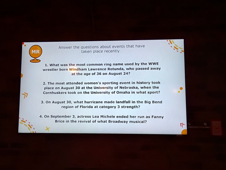 11 World History – Within two, how many total sovereign nations were formed after the breakup of the Soviet Union in 1990 and 1991? Some of us started feverishly scrawling our own lists, and by some weird magicks, by cracky, we managed to get this right within two (no bonuses for hitting the number exact).