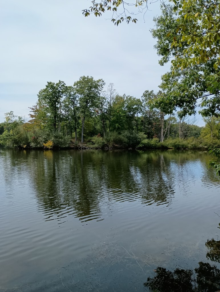 The trails were “just right” for the two of us older hikers! Challenging enough to let you know you’re taking a real hike, but not so challenging that we’d regret not bringing a defibrillator! Nice little rolling hills, some roots to navigate by foot, and so much beautiful scenery! I was particularly interested in checking out the little island: