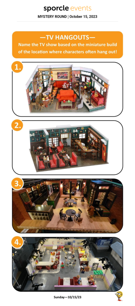 I knew one of them right away. The second one vexed me for a bit, I could hear this one in my head, and I remembered playing it while we were killing zombies (in the game), but I was hemming and having over the exact title. Thankfully I picked the right one! I’m not sure how many teams got this right, but we were pretty excited to move from seventh to second!