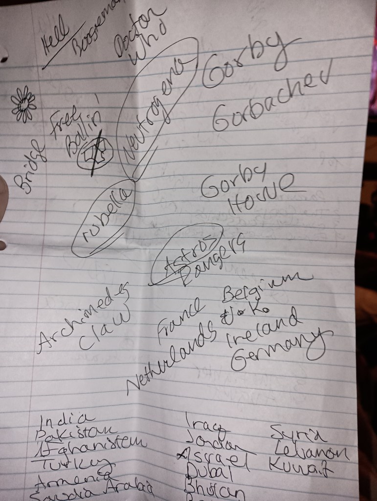 Some of the scrawlings you’ll see here may be actual game answers from Sunday’s game!