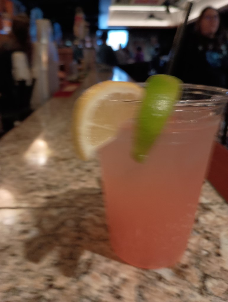 Since this particular day was not quite so nice for garage/patio seating, the trivia game was in an upstairs bar area. Maybe they always do trivia in this area (I honestly don’t know). I ordered one of my favorite non-alcoholic drinks (a half and half mixture of club soda and lemonade).