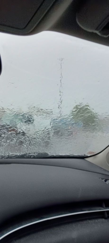 I texted my husband when I left work today, letting him know I was going to wait out the rain a bit before hitting the road.
