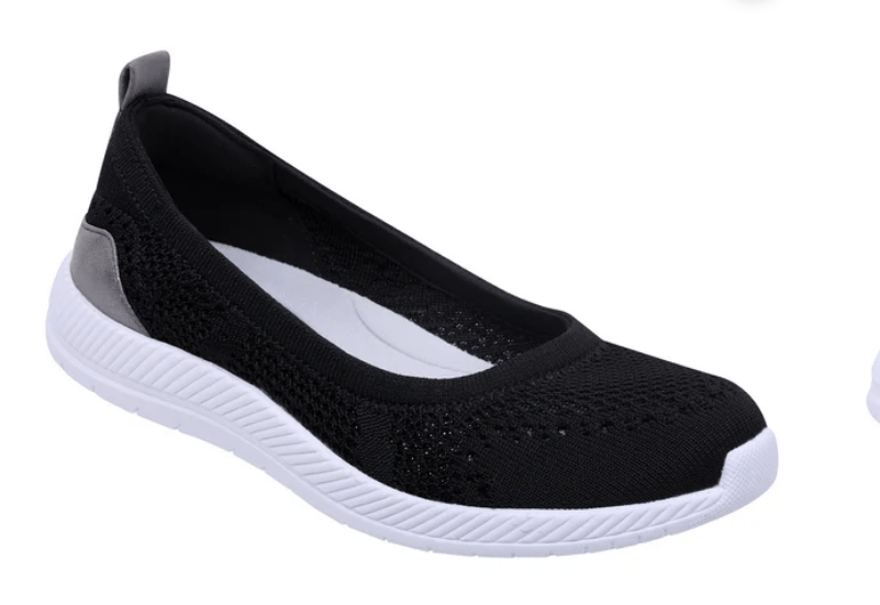 Easy Spirit “Glitz.” The site I ordered them from only offered neutral shades, turns out that I can get them in more “fun” colors – in my size – from other sites. Maybe I’ll do that (if the price is right). Lavender is tempting, even if black does kind of go with everything!