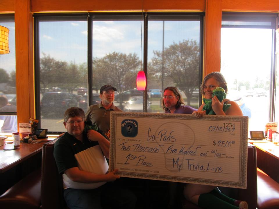 Here we were at MTL finals in July, 2017 at Applebee’s in Taylor, MI… one of only two times we’ve won cash prizes at My Trivia Live finals events. The other time was December, 2019.