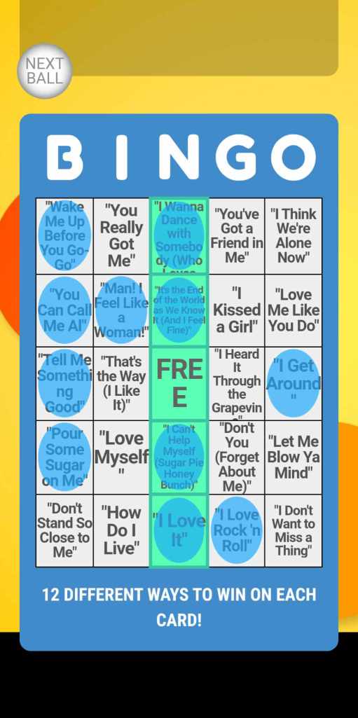 Speaking of prize money, I won a little prize money on a recent music bingo night! What’s “music bingo,” you ask? Well, it’s basically an excuse to tap squares on your phone for two hours in the hopes that you’ll get five consecutive squares!