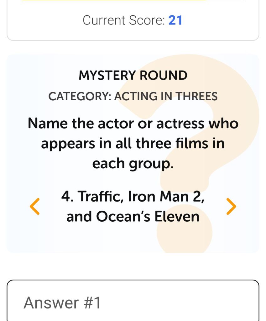 Want to read every single wrong answer we submitted during the game? Let’s see – locusts, Ninja Warrior, Facebook, Magic, Mia Hamm, Americium, gold, idiom, The Office, no idea (times four), Gerald Ford, no idea, Ice Cube, Mark Wahlberg and Mickey Rourke.
