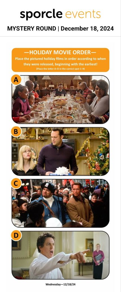 Here’s the visual mystery round from our game. We missed both final questions, finished with a sexy 69 points overall.