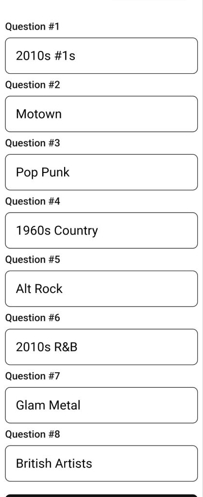 Truth be told, waiting almost a week to do a game recap is not something easy for me to do! Because Sporcle Events only does one set of music quiz questions per week, I like to wait until all of the games are done for the week to do the game recap. This means the game is no longer fresh in my mind, my notes may already be in the recycle bin, and sometimes the screenshots aren’t even on my phone anymore.
