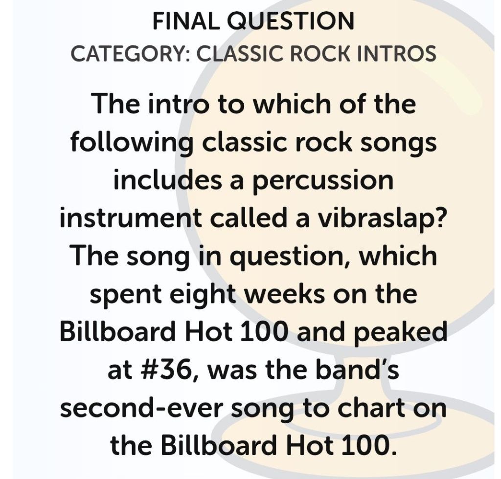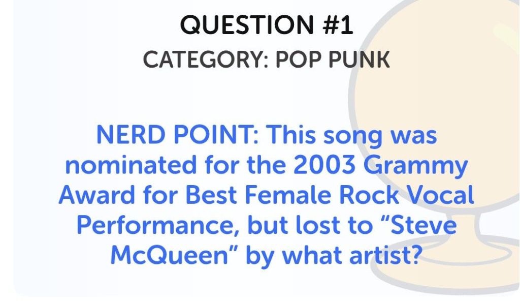 I don’t normally provide so much detail in these music quiz recaps, but…the things we do for trivia – and our friends, right? 👍