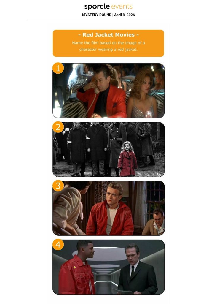 This is it for our trivial pursuits until next week, when we’ll play our music quiz game at Corner Brewery.